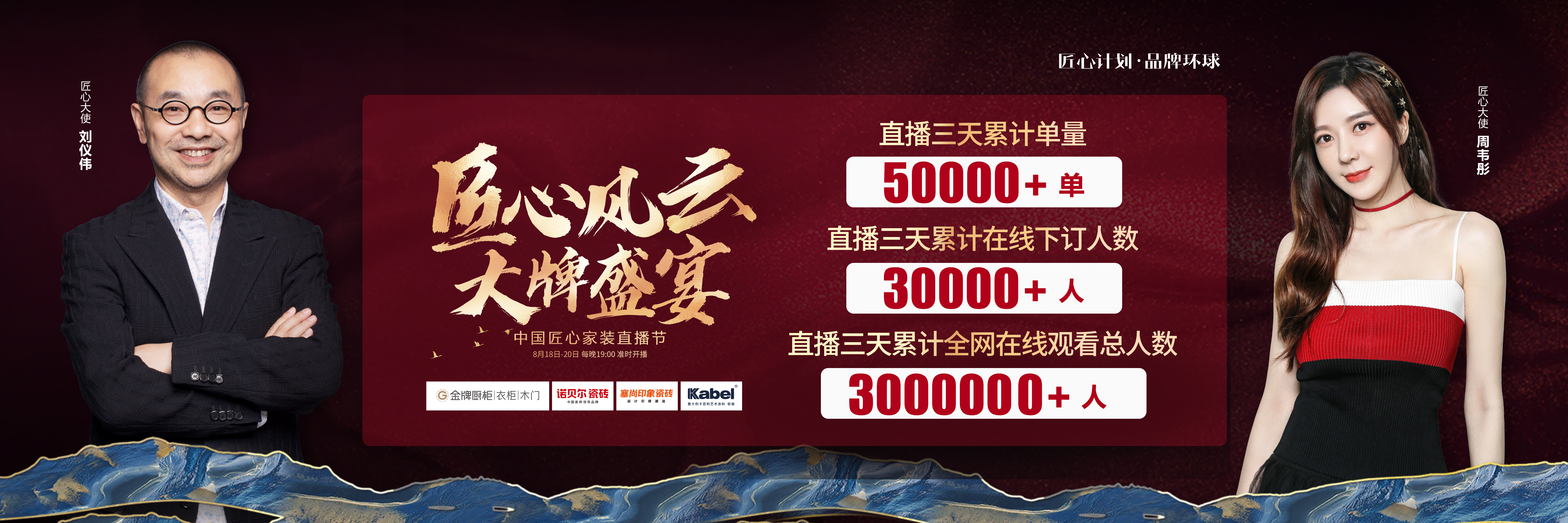 由果博官网厨柜、诺贝尔瓷砖、塞尚印象瓷砖、卡百利艺术涂料联合缔造,创赢科技系统支持全案营销执行的“匠心风云 大牌盛宴”中国匠心家装直播节于8月20日圆满落...